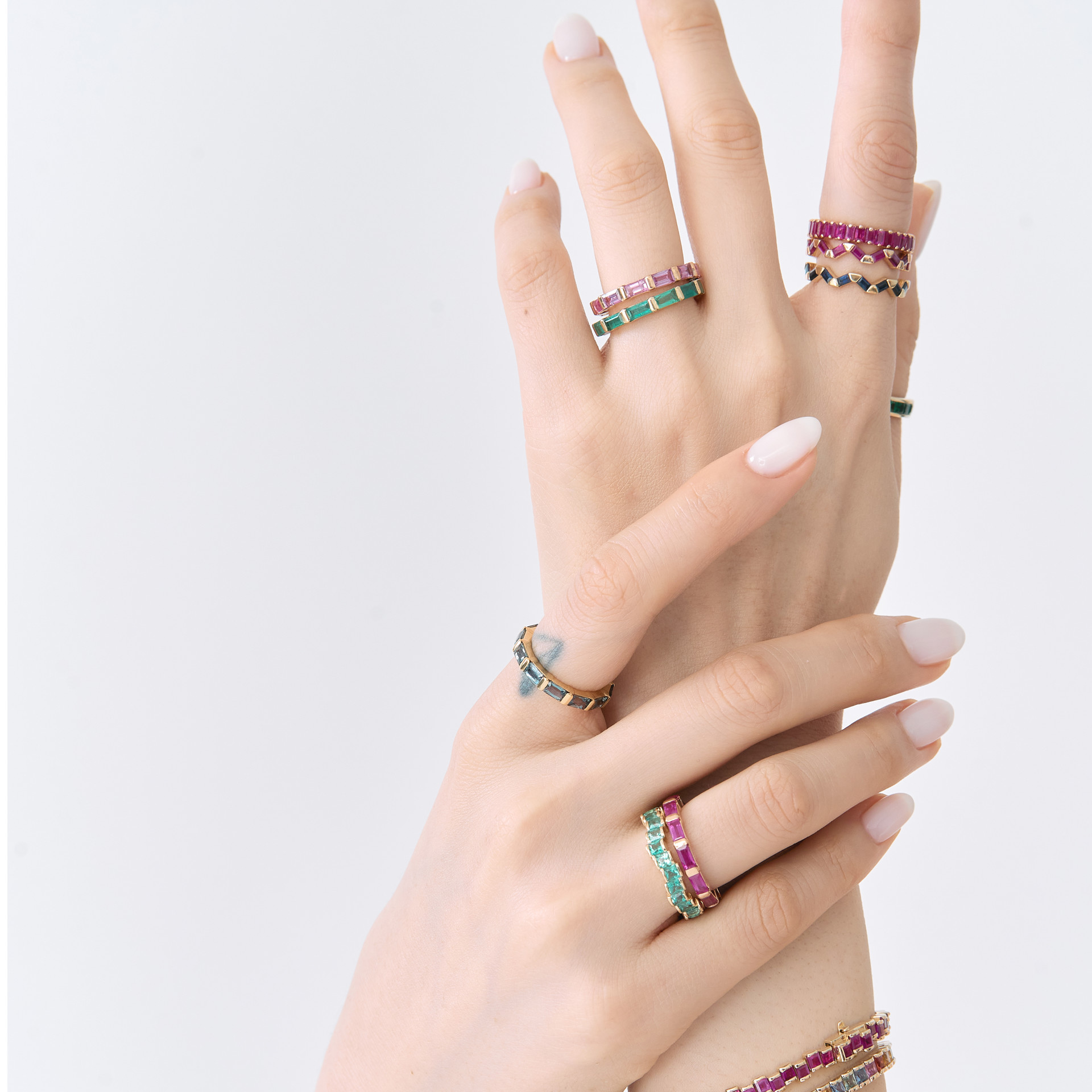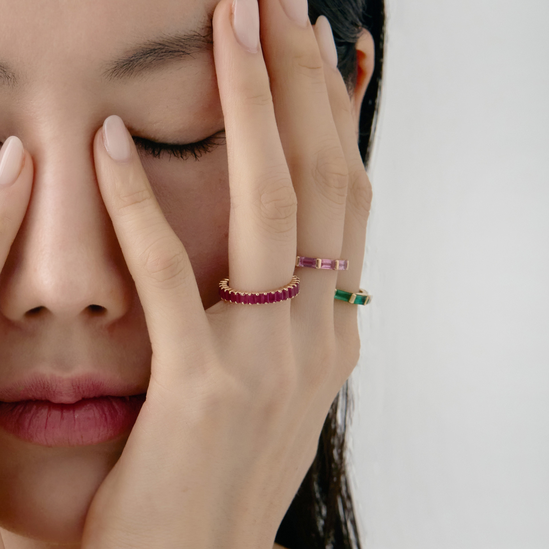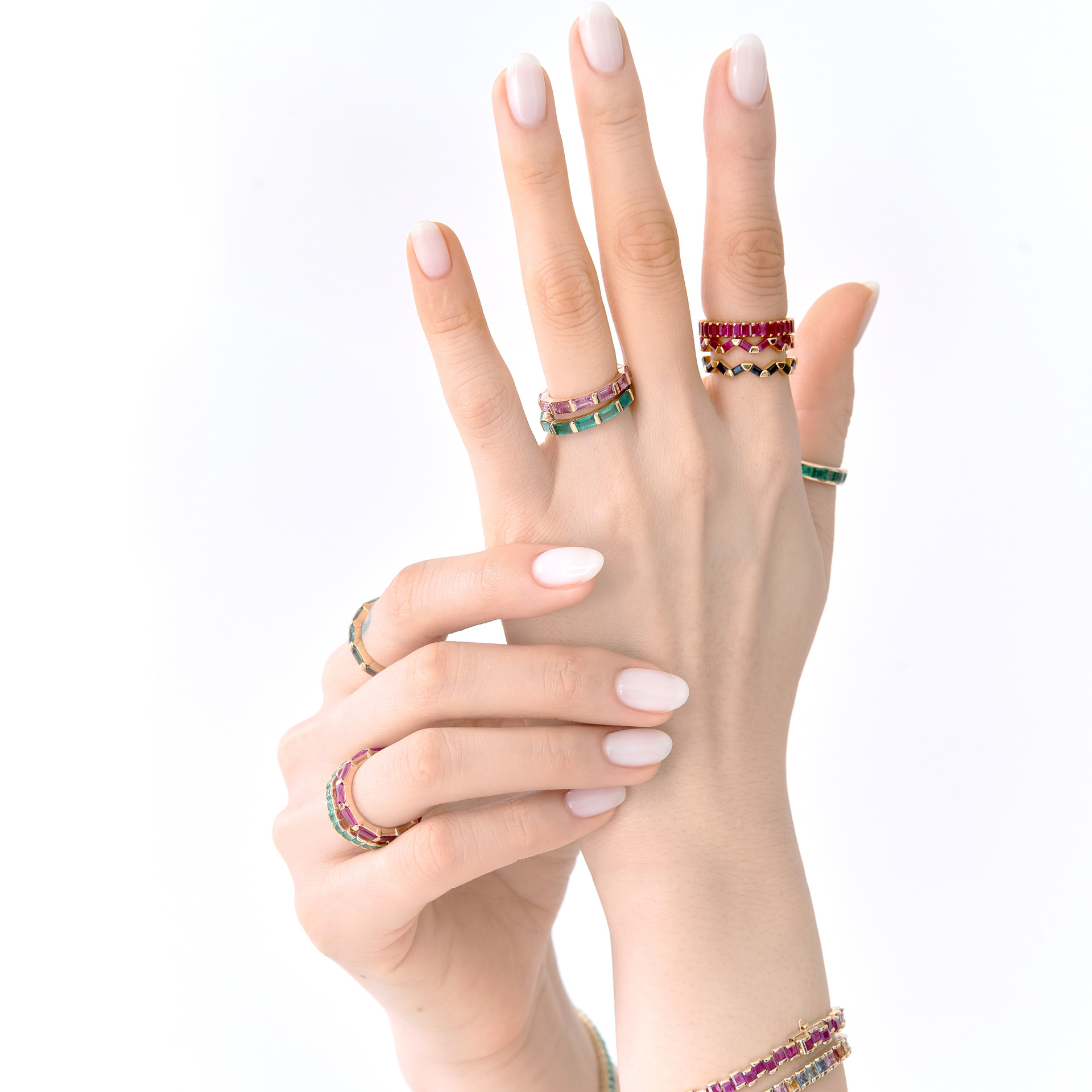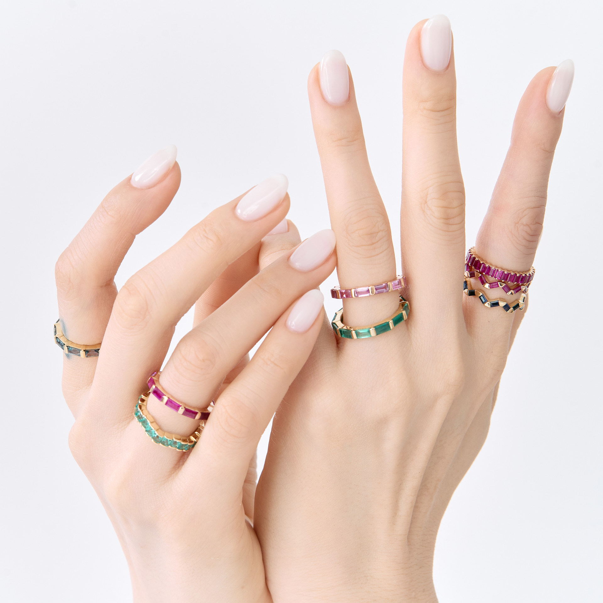 전체적으로 컬러감과 투명도를 맞추어 완성하였습니다. 아타이티의 같은 디자인의 루비나 에메랄드 링과 레이어드 하시거나 또는 다이아몬드 링과 함께 착용하시면 화려한 파티준비로도 완벽합니다. 두께가 3mm정도 되지만 섬세한 세공으로 편안한 착용감을 선사합니다. 핑크를 좋아하신다면 망설이지 마세요..