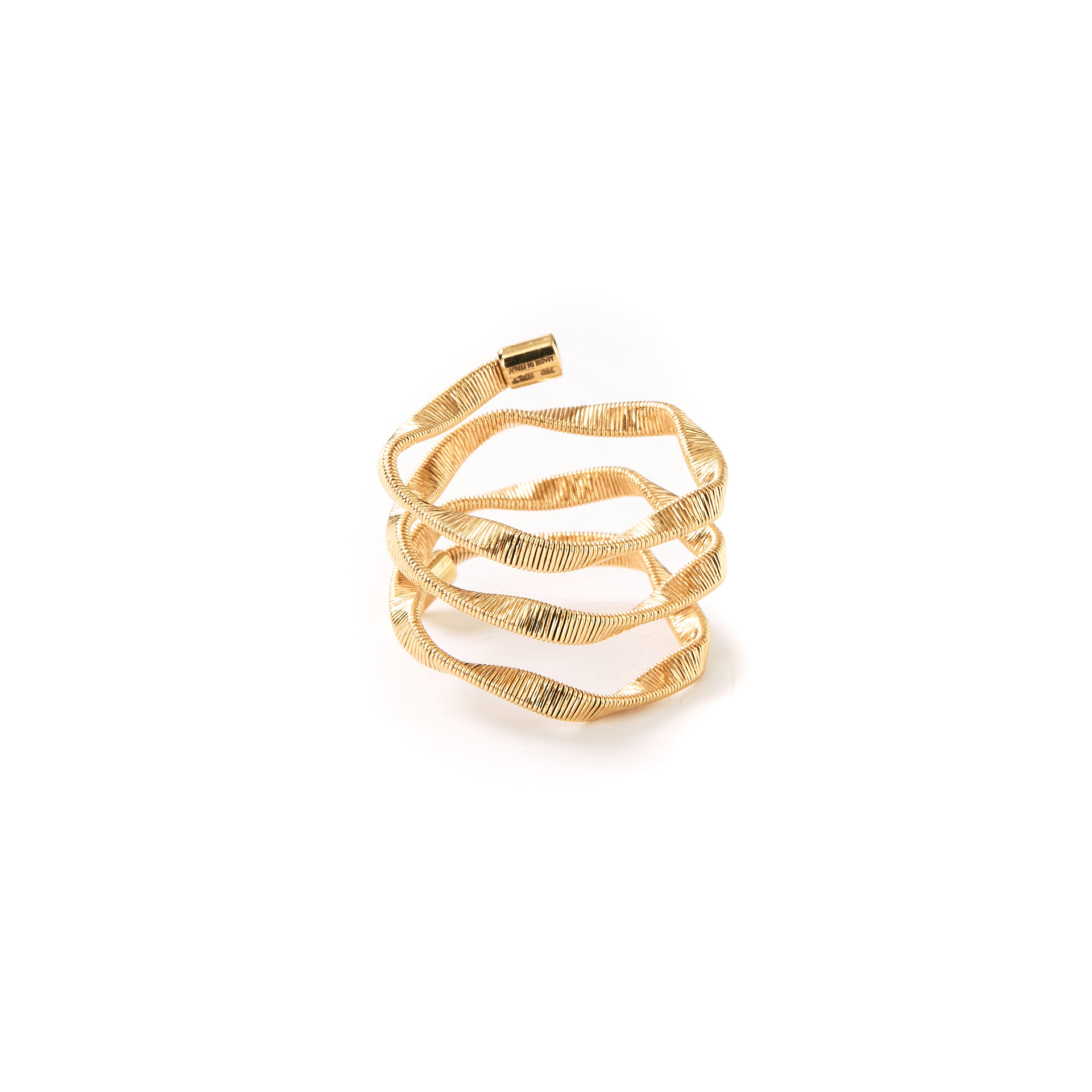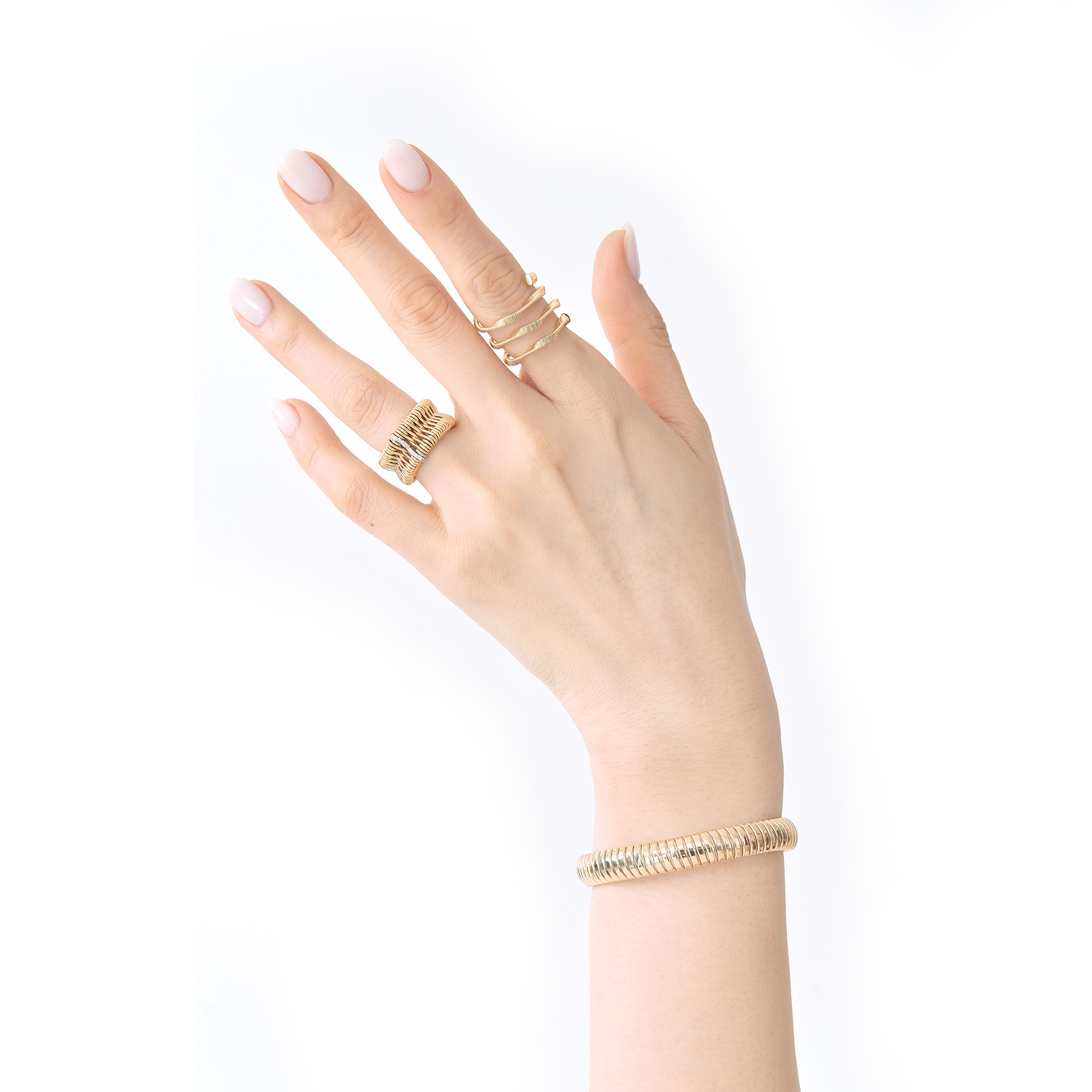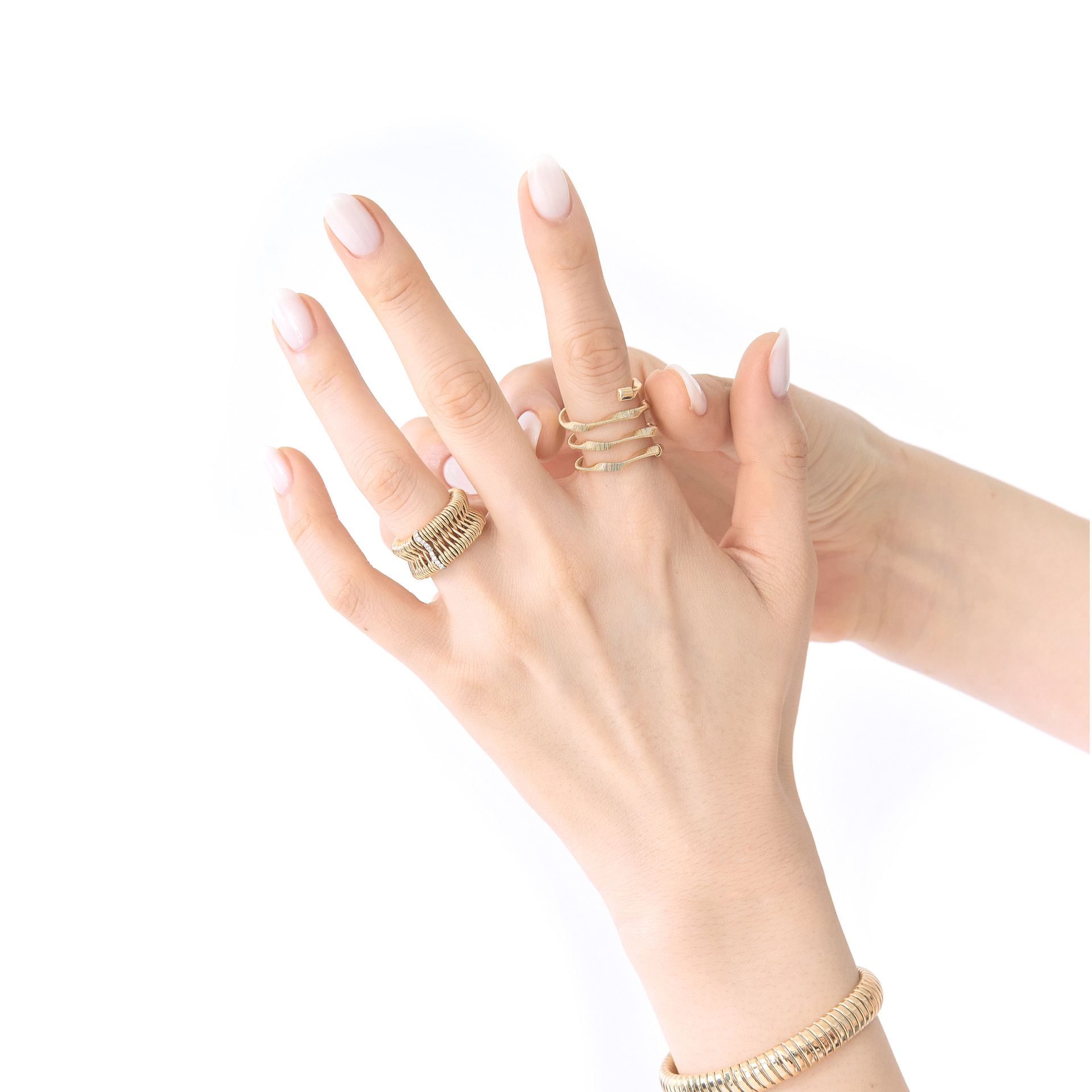 독특한 표면 질감과 전체적으로 유연한 스프링 구조가 특징적인 링입니다. 가느다란 Wire를 감아서 2.5mm 두께의 굵은 와이어를 제작하고, 다시 굵은 Wire를 트위스트하고 감아서 반지의 쉐입을 완성했습니다. 쉽게 만날 수 없는 기술력과 기하학적 아름다움을 발견하세요.
