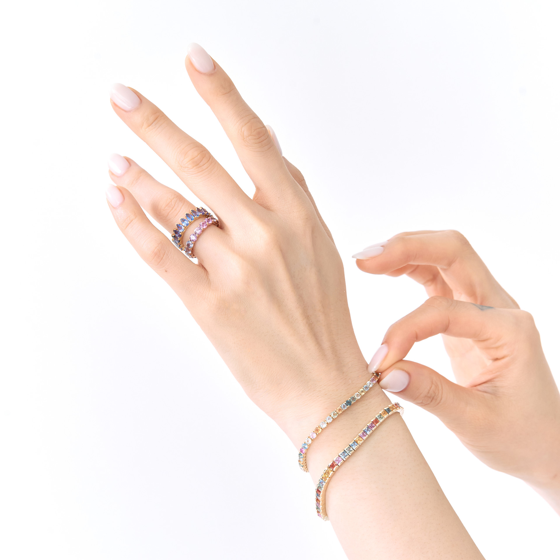 Multi-Colored Sapphire Tennis Bracelet-Guard Style