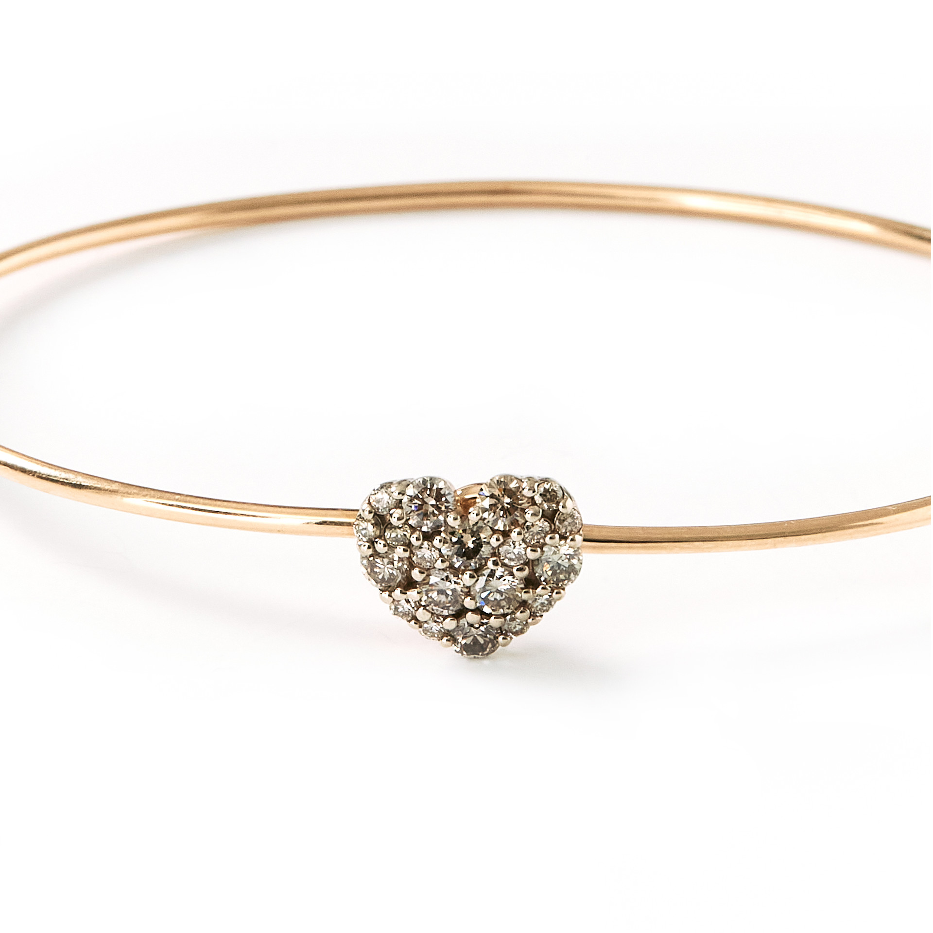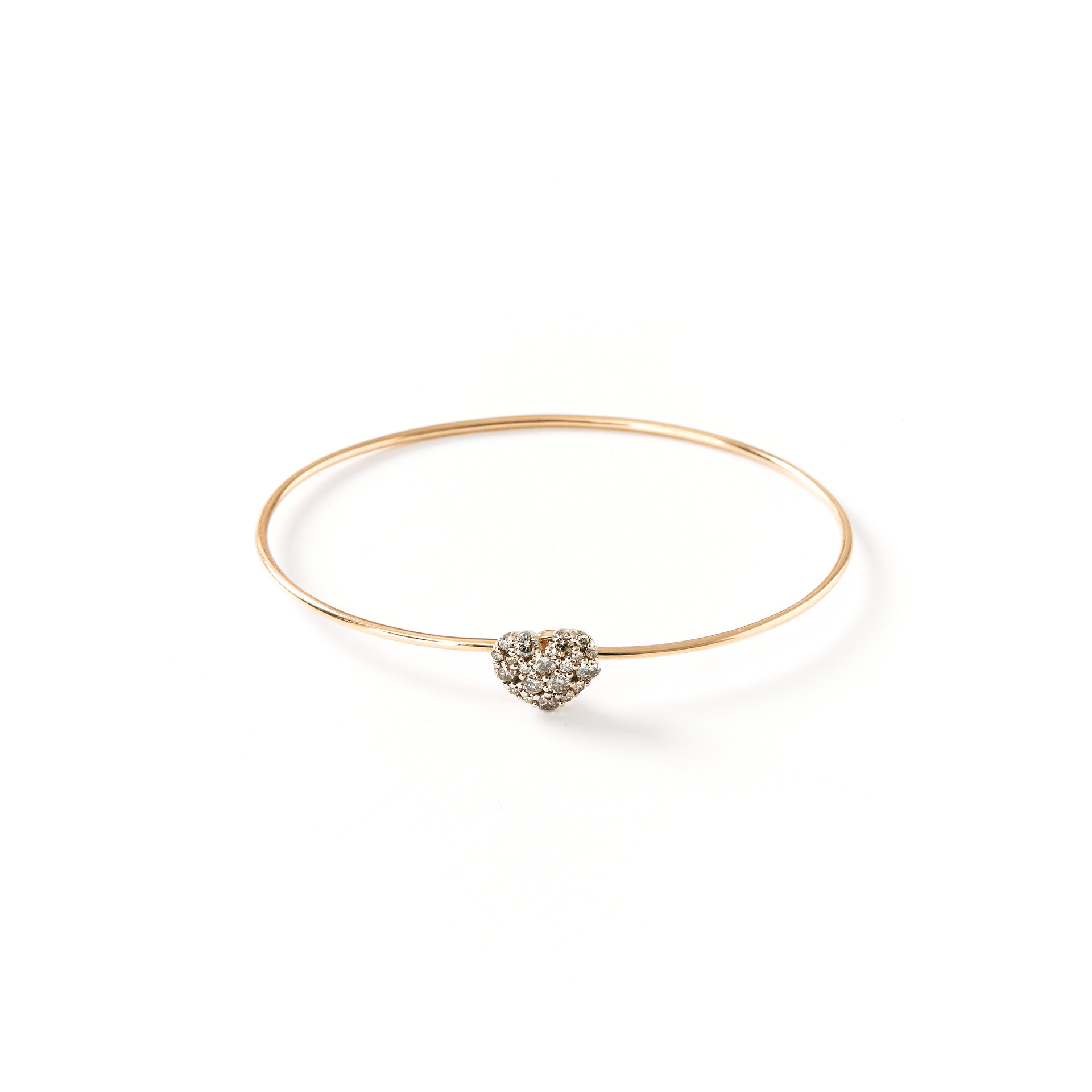 얇은 와이어 뱅글위에 크기가 다양한 꼬냑 다이아몬드가 파베세팅된 하트모티브가사랑스러운 팔찌입니다. 가볍게 하나만 착용하거나 다른 주얼리와 레이어드 해서 개성있게 연출해보세요.